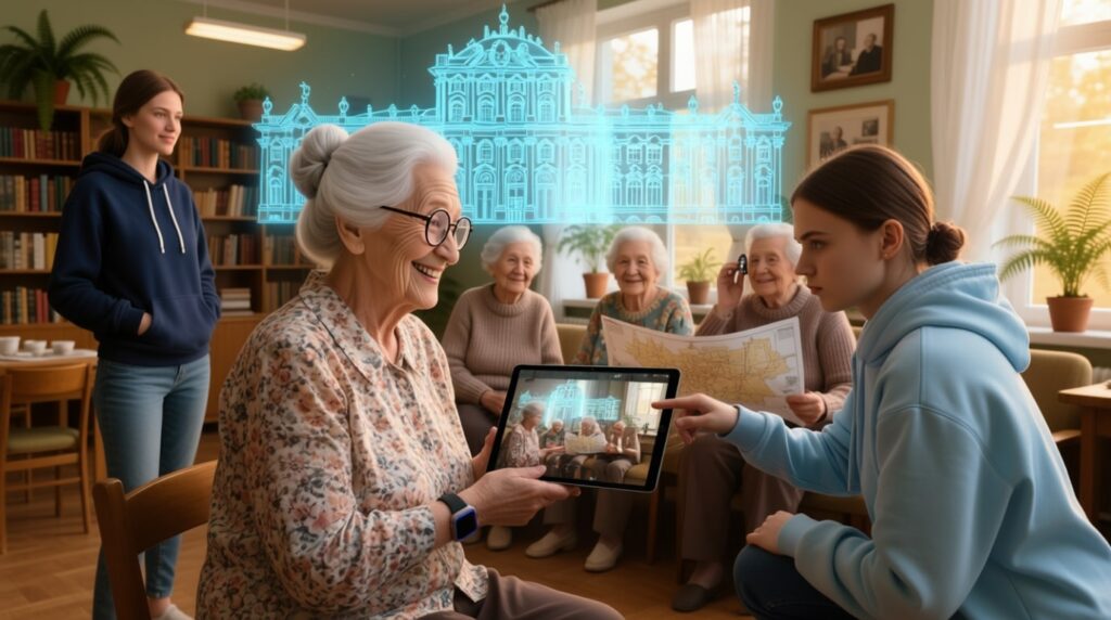 - Творческие блоки: цифровая фотография, видеозвонки с семьёй, онлайн-выставки, виртуальные путешествия по музеям.